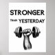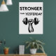 A minimalist gym poster with the quote "Stronger than yesterday". This motivational gift is perfect for bodybuilders, fitness addicted, powerlifters, alpha male, weightlifters, and who is striving for strengt and health.
