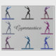 Gymnastics Balance Beam Wrapping Paper - This design consist of eight multicolored gymnast silhouettes on balance beam, some sparkly some solid colors but all just a little different. Also the word gymnastics is written in a script font across the center. This gymnastics wrapping paper is perfect for wrapping up all your birthday and holiday gifts for your favorite gymnast!