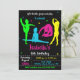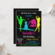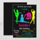 Tumble, jump and play with this energetic gymnastics birthday invitation! Features colorful gymnast silhouettes in neon green, blue, pink, and yellow on chalkboard background. Perfect for gymnastics-themed birthday parties, gym celebrations, and active kids. Fun design with stars and playful poses. Ideal for girls who love gymnastics, tumbling, flips, and jumps. Create an exciting invite for your little gymnast's special day!
