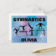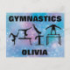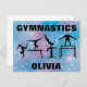 Gymnastics Postcard - Has a beautiful colorful background and 4 female gymnast silhouettes doing a variety of gymnastics skills and events! Can be personalized with the name of your gymnast or your gymnastics club name!