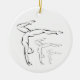 Lightweight, smooth, pure white ornament with nice sheen. Perfect size to be seen from across the room ... and to attract closer inspection! Price was great for ordering enough for the whole family! Clear, bold black design just as requested. Matches the order exactly. Just so nice!