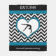 Personalized gymnastics fleece blanket with chevron stripes, a gymnast inside a teal heart, and custom text.