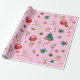 You can add your name to this Christmas wrapping paper, that features a lovely watercolor illustration of a couple of gymnasts in Santa hats, as well as candy canes pine cones and lots of other Christmas decorations. It creates a one of a kind pattern in a light pink background.