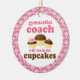 Gymnastics Coach ornament has funny will work for cupcakes quote and a trio of cute chocolate cupcakes occupation design. It makes a great Christmas gift idea or retirement gift for a woman or female Gymnastics Coach.