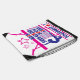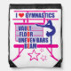 I LOVE GYMNASTICS - VAULT, FLOOR, UNEVEN BARS, BEAM. - Design shows a blue silhouette gymnast with various gymnastics apparatus in pink. (Uneven bars, Vaulting box and Beam).