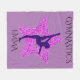 Purple gymnastics fleece blanket with gymnast and personalized name.