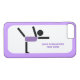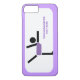 Gymnastics gifts, gymnastics performer custom iPhone 7 case design featuring a minimalist black icon of a gymnast wearing a purple leotard with a purple border around.