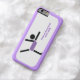 Gymnastics gifts, gymnastics performer iPhone 6 case featuring a minimalist black icon of a gymnast wearing a purple leotard with a purple border around. This cool, modern design is a template and it is completely customizable.