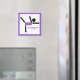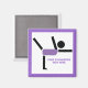 Gymnastics gifts, gymnastics performer magnet displaying a minimalist black icon of a gymnast wearing a purple leotard with a purple border around.