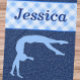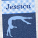 Gymnastics Girl Light Blue Plaid with Dark Blue faux Glitter combination with powder blue gymnast doing a back handspring. This personalized design is finished off with her name!