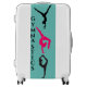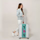 Gymnastics luggage with gymnasts, and white handles and bumpers for girls.