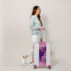 Gymnastics luggage with gymnast and custom name with purple handles and bumpers for girls.