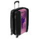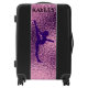 Gymnastics luggage with gymnast and custom name with black handles and bumpers for girls.