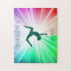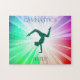 Beautiful lights colored puzzle with gymnast in purple. Personalized name.