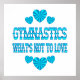 Gymnasts and anyone who loves gymnastics will enjoy this shiny blue design with hearts and fun letters saying Gymnastics What's Not To Love.