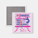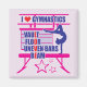 I LOVE GYMNASTICS - VAULT, FLOOR, UNEVEN BARS, BEAM. - Design shows a blue silhouette gymnast with various gymnastics apparatus in pink. (Uneven bars, Vaulting box and Beam).