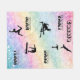 This custom gymnastics blanket features a colorful pastel gradient background with a sparkling effect, showcasing gymnast silhouettes performing on vault, bars, beam, and floor. The bold, sporty font highlights each event, making it perfect for competitive gymnasts, teams, and coaches. Personalize it with any name for a unique touch. A cozy and stylish gift for gymnasts of all ages, ideal for birthdays, competitions, or gym decor.