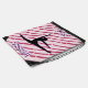 Girls Personalized Gymnastics pink and white peppermint candy sprinkle design features a black silhouette of a gymnast in a split position. Decorated with a pink and white striped pattern and personalized with the name of your gymnast, dancer, cheerleader or daughter. Perfect for any girl who loves the color pink, especially wonderful for birthdays and Christmas!