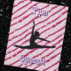 Girls Personalized Gymnastics pink and white peppermint candy sprinkle design features a black silhouette of a gymnast in a split position. Decorated with a pink and white striped pattern and personalized with the name of your gymnast, dancer, cheerleader or daughter. Perfect for any girl who loves the color pink, especially wonderful for birthdays and Christmas!