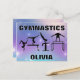 Gymnastics Postcard - Has a beautiful purple turquoise star ombre background and gymnast silhouettes doing a variety of gymnastics skills and events! Can be personalized with the name of your gymnast!