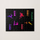 Gymnastics Puzzle - Vault, Bars, Beam, Floor - Multicolored design with gymnast silhouettes all over, plus you can personalize this gymnastics puzzle with the name of your gymnast!
