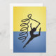 In gymnastics the ribbon on the floor is a great act to do. This design is a gymnastics floor routine. The gymnast is on the floor in a jump with the ribbon in a nice swirling pattern. This gymnastics ribbon routine looks great on these invitations