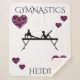 Gymnastics white Sherpa blanket with gymnast & purple hearts. Personalized name.