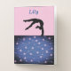 Add the name of your gymnast to the front! Also on the front is a gymnast silhouette doing a back handspring! Pink and blue colors with stars all over!
