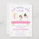 Plain white envelopes are included with paper invitations and will come to fit the invitation size you select. If you don’t need the envelopes, you may choose to not receive them by selecting the dropdown below "Envelopes" and choosing "None." If you’d like to have a design on your envelopes, you can browse all of these available envelopes to find the design that complements your Gymnastics Tumble Pink Birthday Invitation.