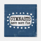 "Gymnasts Have More Fun" is a cute text design with a white accent shape surrounded by white whimsical dots.