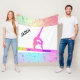 GYMNASTICS FLEECE BLANKET WITH GYMNAST ON BALANCE BEAM & PERSONALIZED NAME.