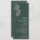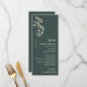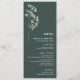 Peacock green menu with off white text and illustration of gypsophila at left.