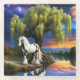 Gypsy Vanner Horse and Willow tree under a Full Moon and a colorful Starry sky