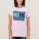 white tee w/ blue H20PE logo on front african well fund logo and website on back