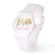 I only have one complaint. I ordered the watch with clear case and strap, and what was sent was white case and strap. I'm going to keep it because 1) it looks very nice in white, and 2) it would take too long to get a replacement made and sent in time for my occasion. Aside from the mix up with the color, the watch does look very good in white. The purple dial is actually sparkly which did not show in the online images. That was a nice surprise. If you like Swatch watches this is very similar to those. It's 33.6mm in diameter, 10.5mm thick, and 40.6mm lug to lug. Stainless steel case back says 3ATM/30m WR, so no swimming or showering or submerging this one. If you like Woodstock, this is a great choice.