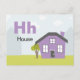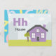 Letter H is for House in our Alphabet Flash Card set. Get all 26 letters of the alphabet! A double-sided postcard that is great for memory games and teaching, geared for education, schools, teachers and homeschool for kindergarten and babies. All text is editable if you need to customize.