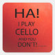 Ha! I Play Cello And You Don't! Browse the sub-sections to find your instrument! Or see all our musical designs on on cups, mugs, tee shirts, sweatshirts, hats, and other gifts and clothing.