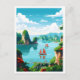 Ha Long Bay Vietnam vintage travel illustration Postcard