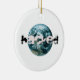 Lightweight, smooth, pure white ornament with nice sheen. Perfect size to be seen from across the room ... and to attract closer inspection! Price was great for ordering enough for the whole family! Clear, bold black design just as requested. Matches the order exactly. Just so nice!