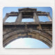 The Arch of Hadrian is a monumental gateway resembling – in some respects - a Roman triumphal arch. It spanned an ancient road from the center of Athens, Greece, to the complex of structures on the eastern side of the city that included the Temple of Olympian Zeus. It has been proposed that the arch was built to celebrate the adventus (arrival) of the Roman Emperor Hadrian and to honor him for his many benefactions to the city, on the occasion of the dedication of the nearby temple complex in 131 or 132 AD. It is not certain who commissioned the arch, although it is probable that the citizens of Athens or another Greek group were responsible for its construction and design. The arch is located 325m southeast of the Acropolis.