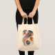 The printing came out very well, better than I had anticipated. The natural color fabric is sturdy with strong seams and comfortable handles. This tote fits easily over my shoulder. As it is filled, the bottom flattens out--very cool! I would buy this product again. This grocery tote holds a lot of groceries! The image quality was very good. The colors were a little darker than I had expected. The darkness may have been due to printing on a natural color fabric rather than on white. The cat design is attractively centered on the tote. The spirit of the design is very lively, just as it appears on the Zazzle website.