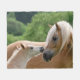 Haflinger horses, mare with foal side by side, cuddling. The cute baby avelignese pony confidently turns to its mommy, A blond flaxen chestnut horse breed, also called haffies or avelignese, photographed by Katho Menden. This soft cozy fleece blanket is a gift idea for girls and horselovers. http://www.zazzle.com/kathom_photo