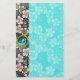 HAIKU/BLACK WHITE SPRING FLOWERS BLUE GEM MONOGRAM STATIONERY
