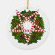 Lightweight, smooth, pure white ornament with nice sheen. Perfect size to be seen from across the room ... and to attract closer inspection! Price was great for ordering enough for the whole family! Clear, bold black design just as requested. Matches the order exactly. Just so nice!