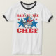 This funny barbecue design is perfect for the master barbecue chef at your house. Featuring a stick man chef wearing a BBQ apron, hot dogs on the grill and red and blue stars in the background. Text says HAIL TO THE CHEF. Great gift for Father's Day or birthday. On T-shirts, mugs, caps and more! PinkInkArt original!