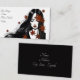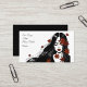 A stylish business card featuring an artistic illustration of a woman with flowing hair adorned with autumn leaves.