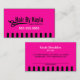 © Socialite Designs. The bright pink hairdresser, beauty salon or stylist business card template incorporates a fun design made to look like a comb. The scissors are movable, when you press the customize button, to incorporate with your text. Easily customize the front and back of the card with your text. Choose from lots of different fonts.