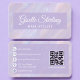 Iridescent professional business card for hair stylists. Designed so clients can quickly scan the QR code to book appointments, view your portfolio, or save contact details. Ideal for salon clients, walk-ins, networking, and referrals. Editable text and QR destination. Clean print-ready layout.
