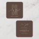 Hair stylist modern brown monogram initials square business card