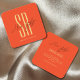 Hair stylist modern orange monogram initials square business card